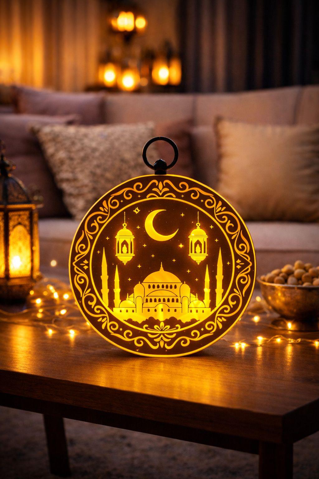 Askılı & Masa Üstü Hoşgeldin Ramazan LED Lamba, sarı ve beyaz iki renkli ışığıyla evinizde sıcak ve huzurlu bir atmosfer oluşturur. Hem asılarak hem masa üstünde kullanılabilen bu özel tasarım, Ramazan süsü ve hediye için ideal bir seçimdir.